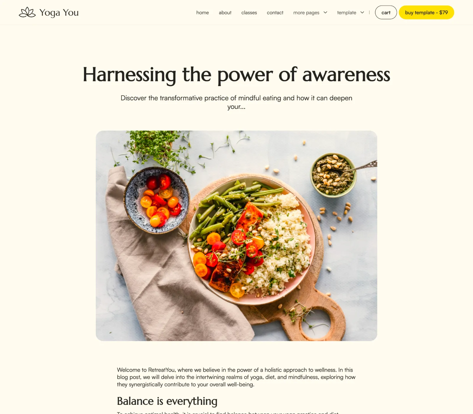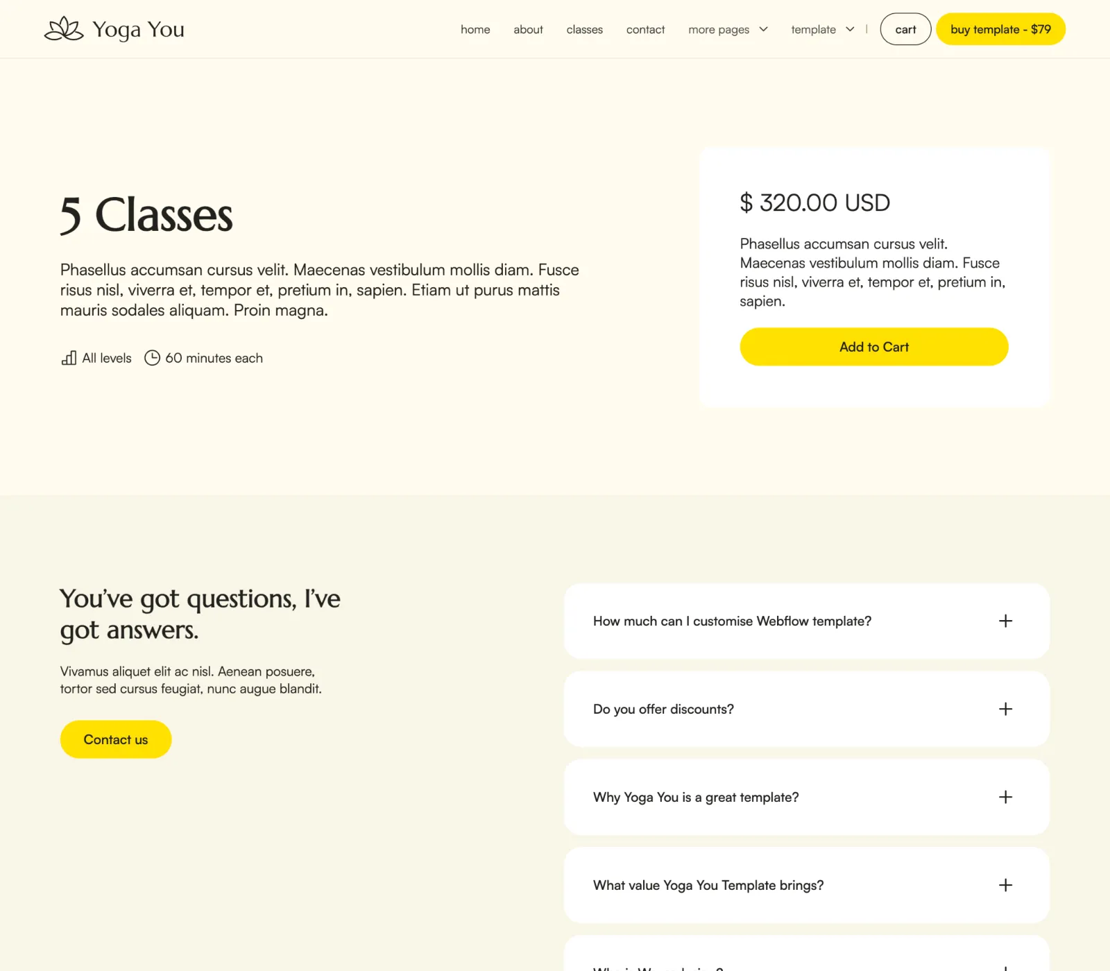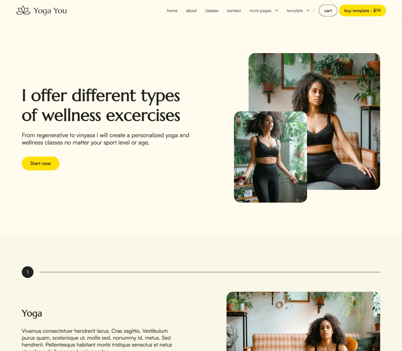 Yoga You Consulting Template comes with eCommerce set up, so you can start selling your services straight