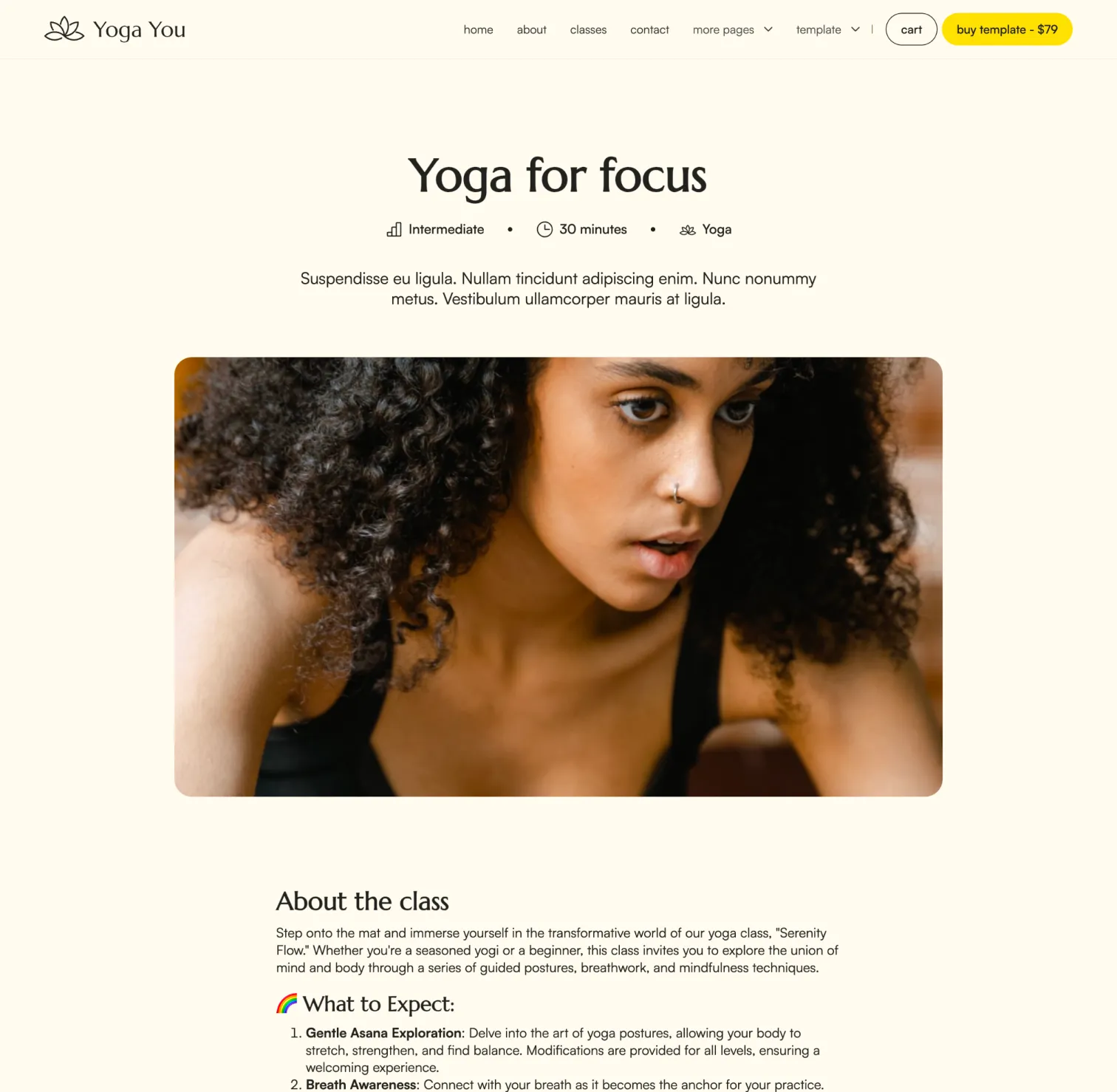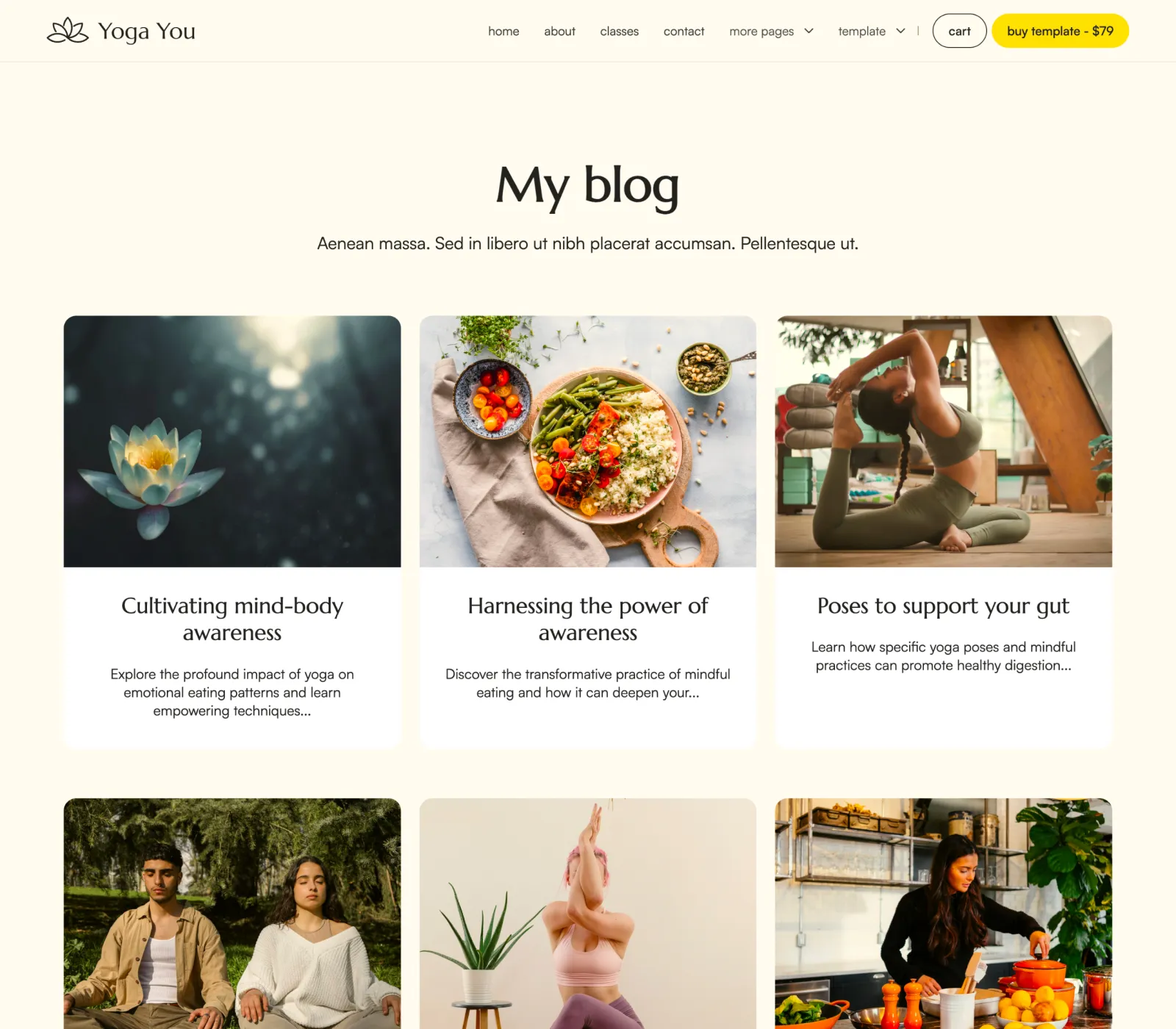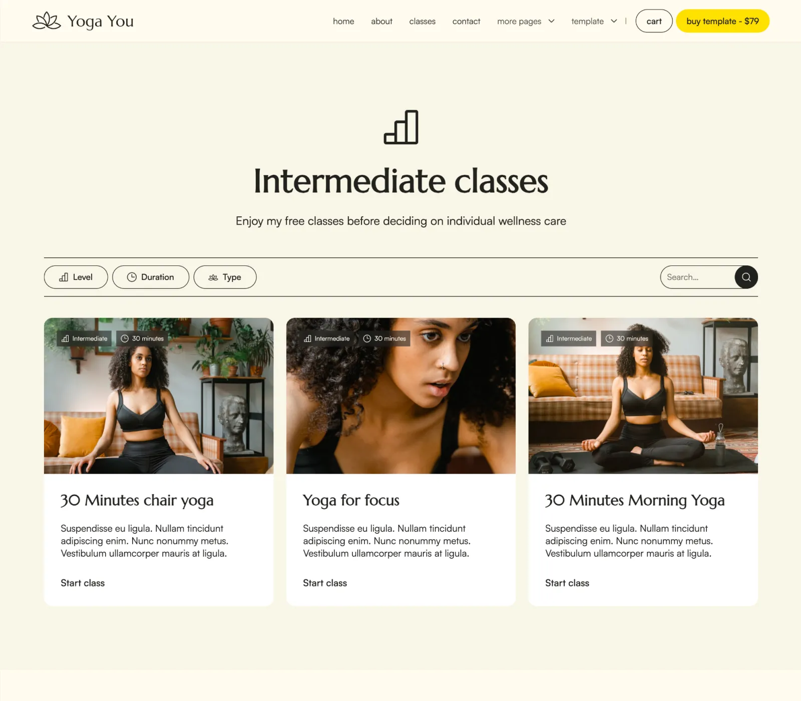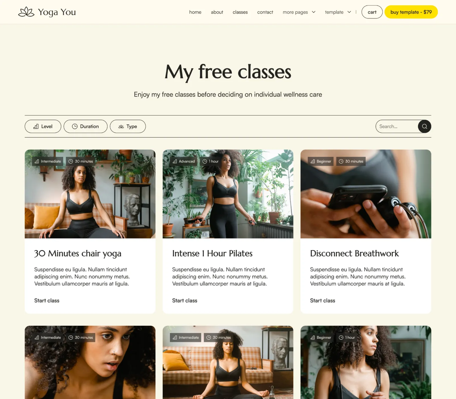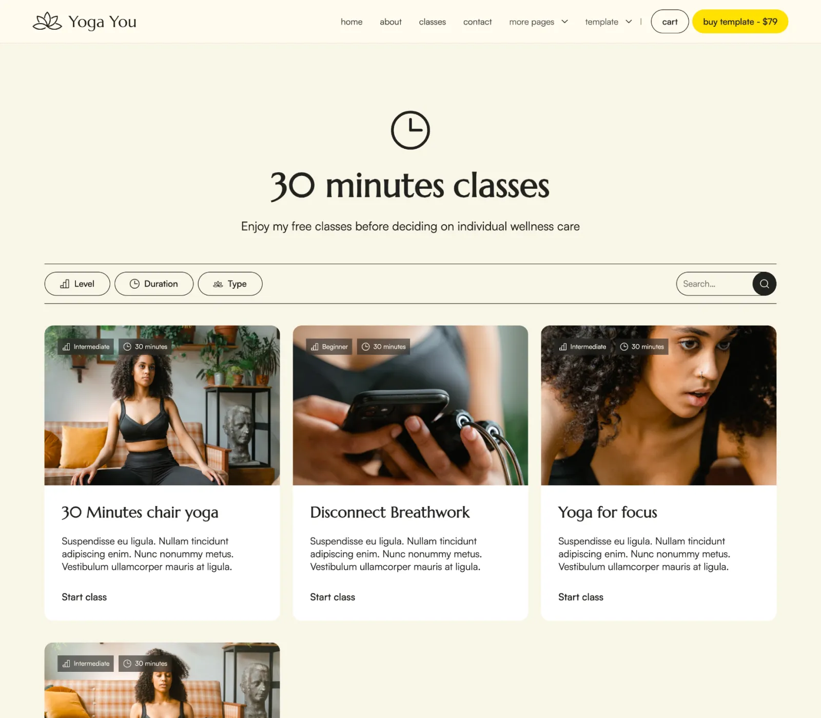 Yoga You includes a blog, classes, level, duration and type collections that are made on the powerful